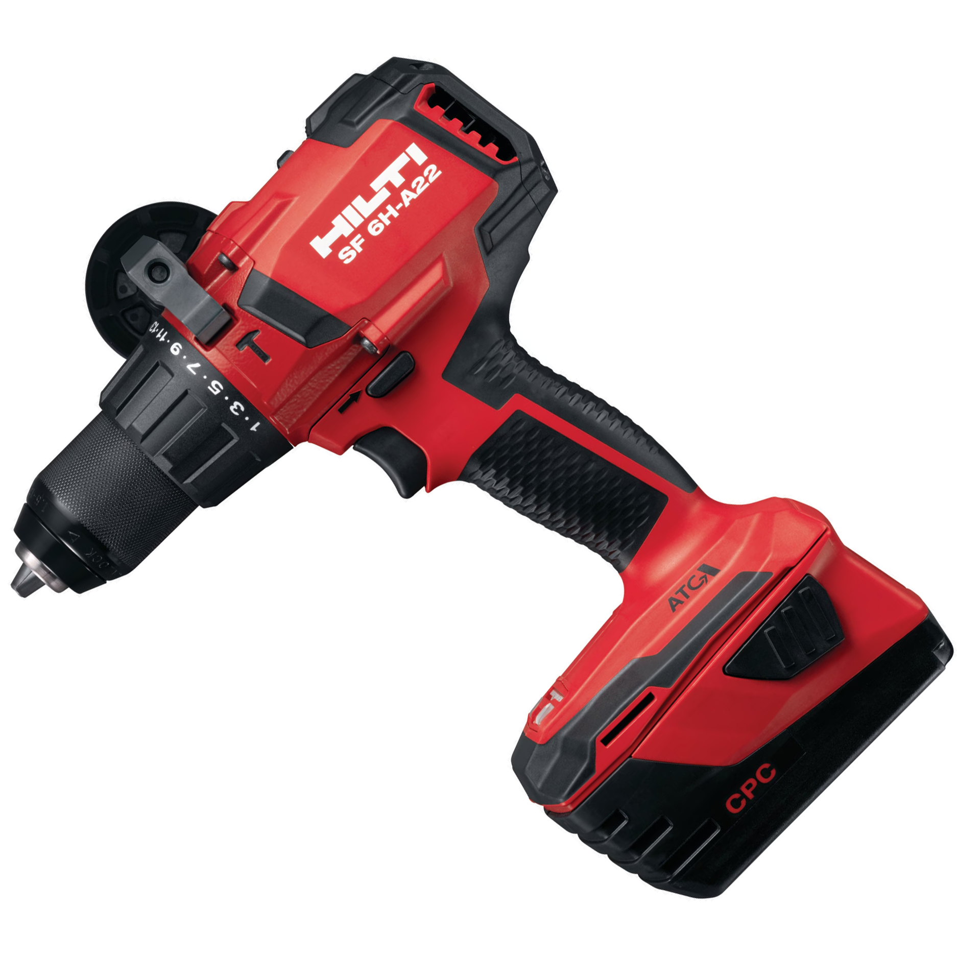 Akumulatorowa wkrętarko-wiertarka udarowa 22 V o dużej mocy, z systemem aktywnej kontroli momentu obrotowego (ATC) i elektronicznym sprzęgłem, do uniwersalnego stosowania w drewnie, metalu, murze oraz innych materiałach.